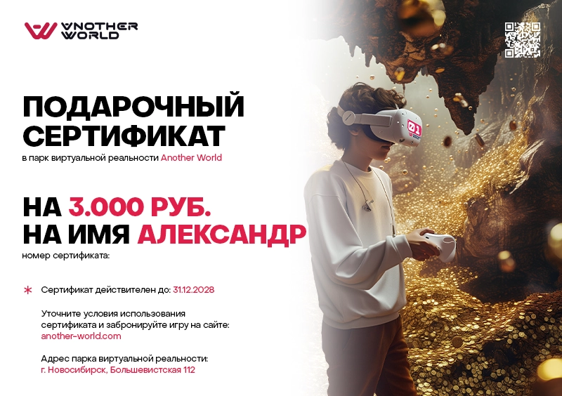 Сертификат можно получить самовывозом на нашей VR-арене.